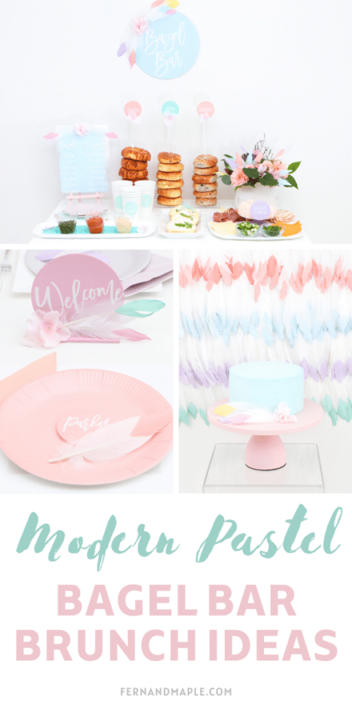 What is your favorite bagel topping? Let me know in the comments! I’d also love to hear your thoughts on this theme. And, for more pastel party ideas, check out my Magical Pastel Unicorn and Pastel Easter parties, and my Modern Mint Wedding post!